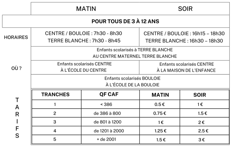 Horaires d'ouverture périscolaire - Matin :